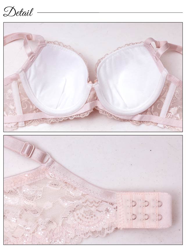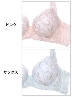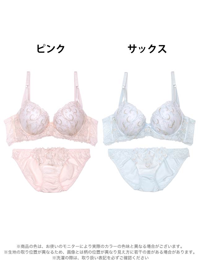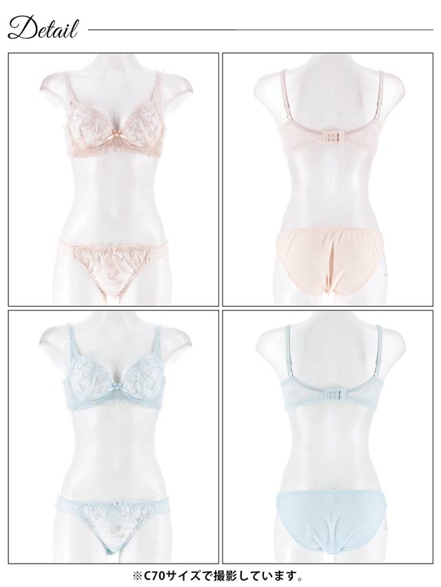 ダスティブルームエンブロイダリー育乳脇高ブラジャー&バック透けフルバックショーツ