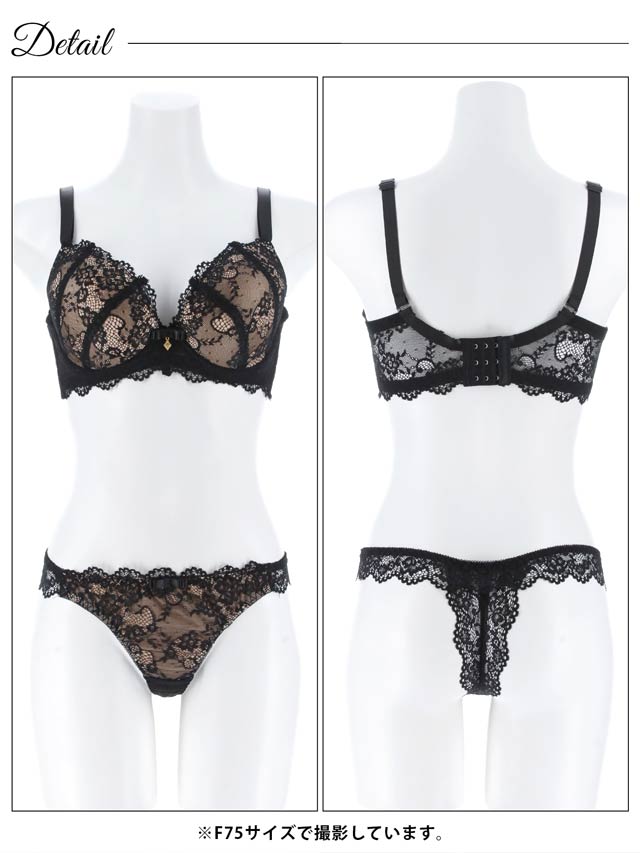 10/1再販!【EFサイズ】ヌーディーレース育乳脇高ブラジャー&バック透けTバックショーツ[大人気]