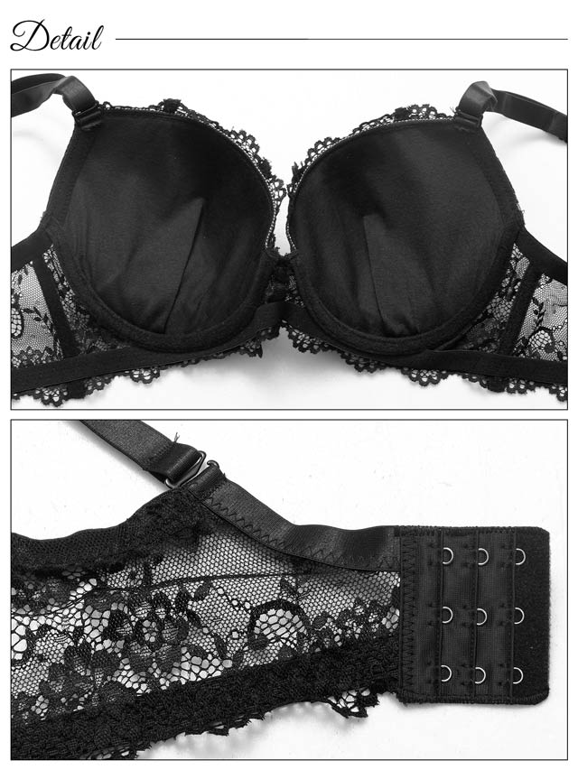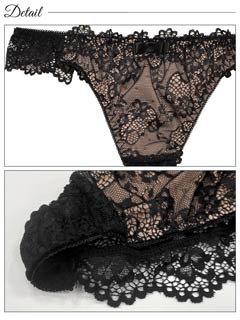 オールレースカットストリング育乳脇高ブラジャー&バック透けフルバックショーツ