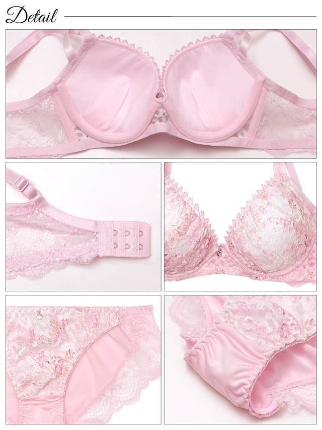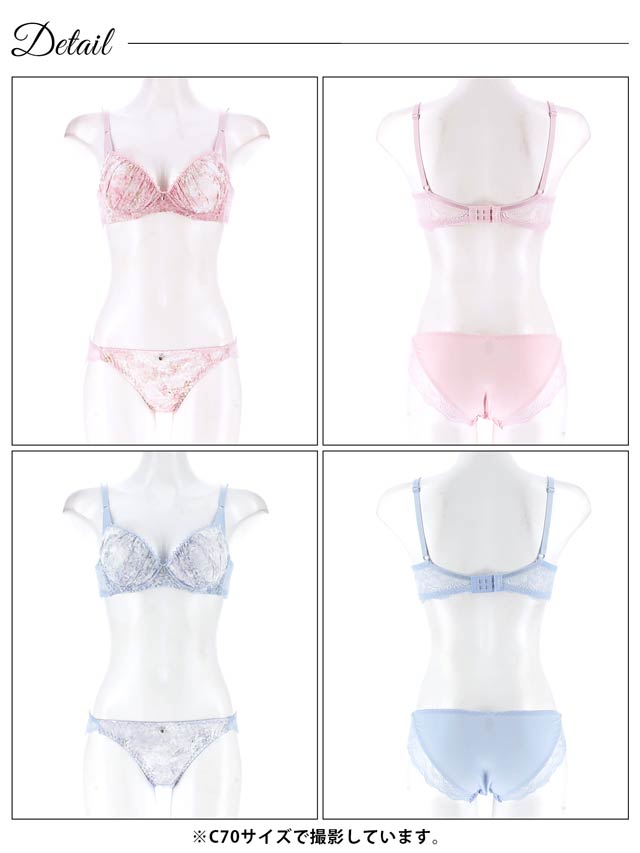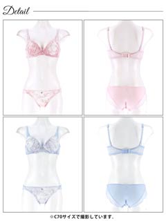 ダスティブルームエンブロイダリー育乳脇高ブラジャー&バック透けフルバックショーツ