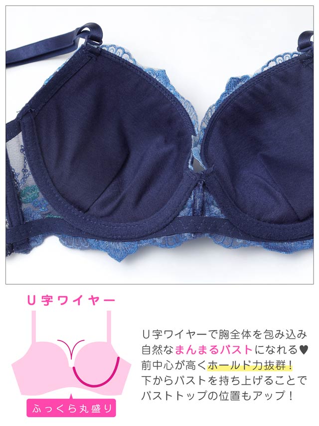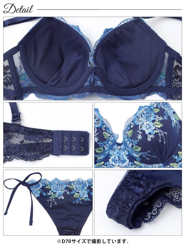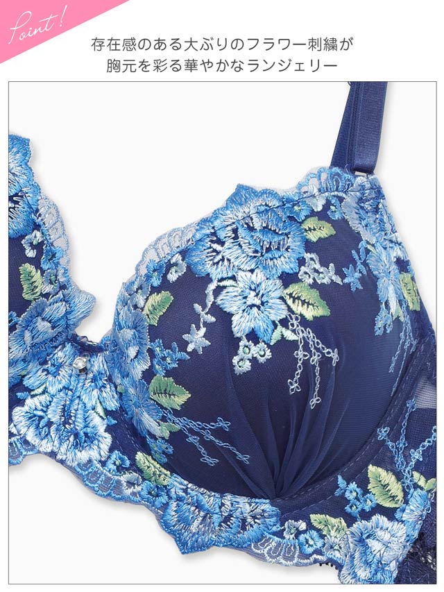 ダスティブルームエンブロイダリー育乳脇高ブラジャー&バック透けフルバックショーツ