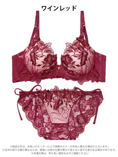 リリーベルエンブロイダリー育乳脇高ブラジャー&サイド紐バック透けフルバックショーツ[激売れ]