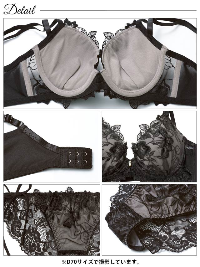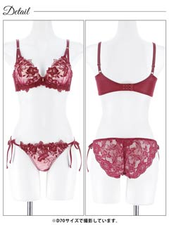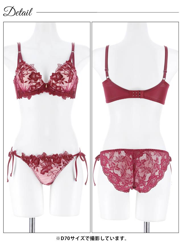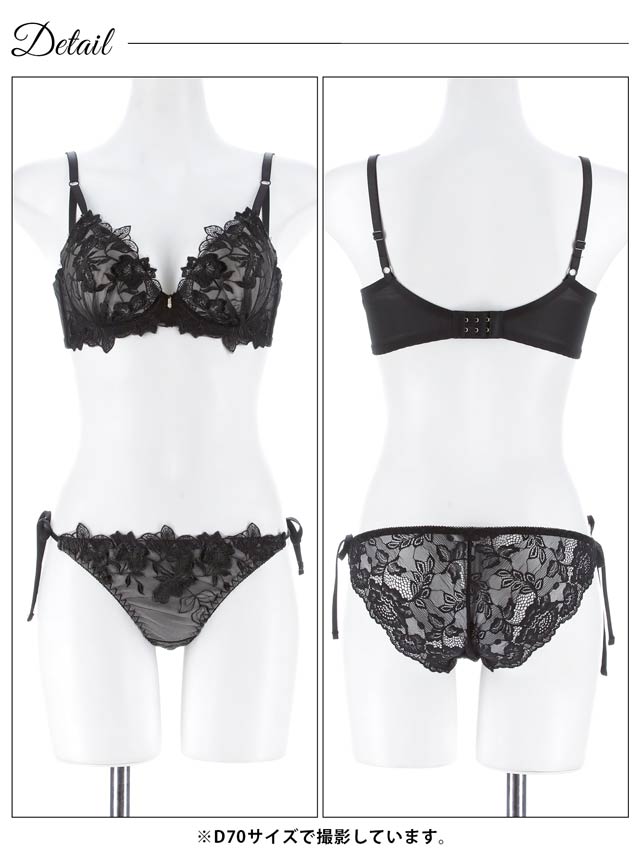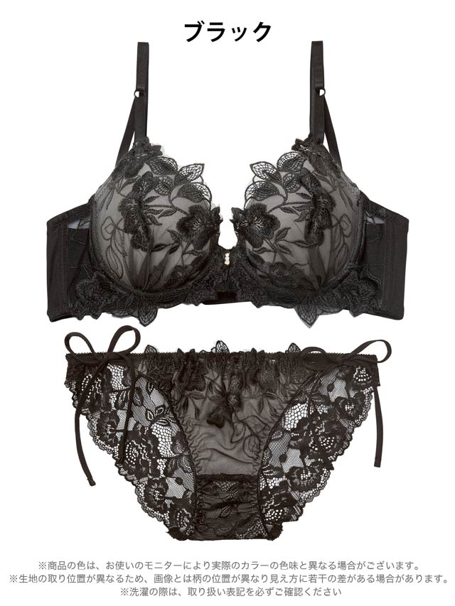 フロレゾンローズレース育乳脇高ブラジャー&サイド紐バック透けフルバックショーツ