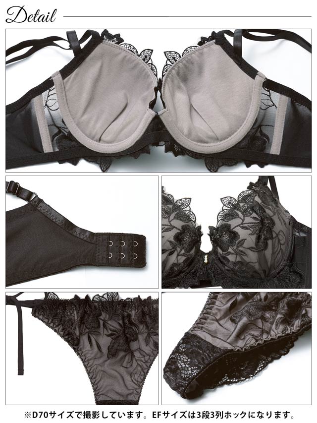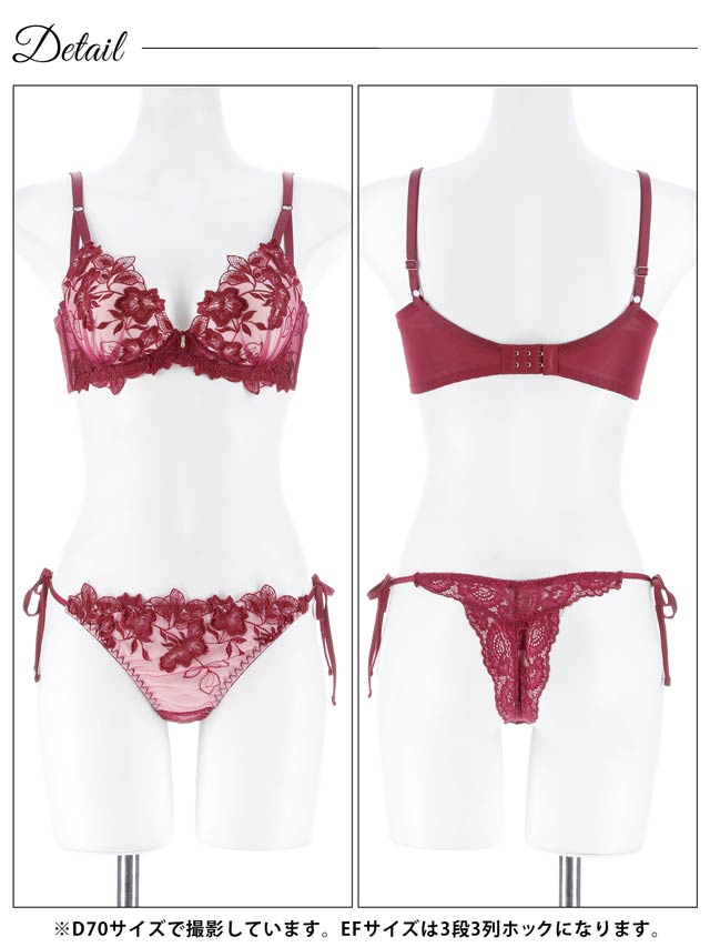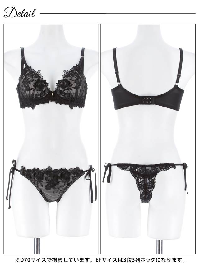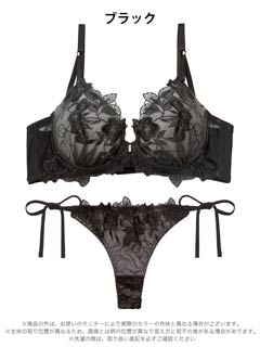 12/26新作!【三上悠亜着用】【EFサイズ】ノーブルボタニカルエンブロイダリー育乳脇高ブラジャー&サイド紐バック透けTバックショーツ[大人気]