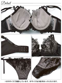 フロレゾンローズレース育乳脇高ブラジャー&サイド紐バック透けフルバックショーツ