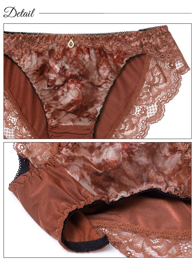 オールレースカットストリング育乳脇高ブラジャー&バック透けフルバックショーツ