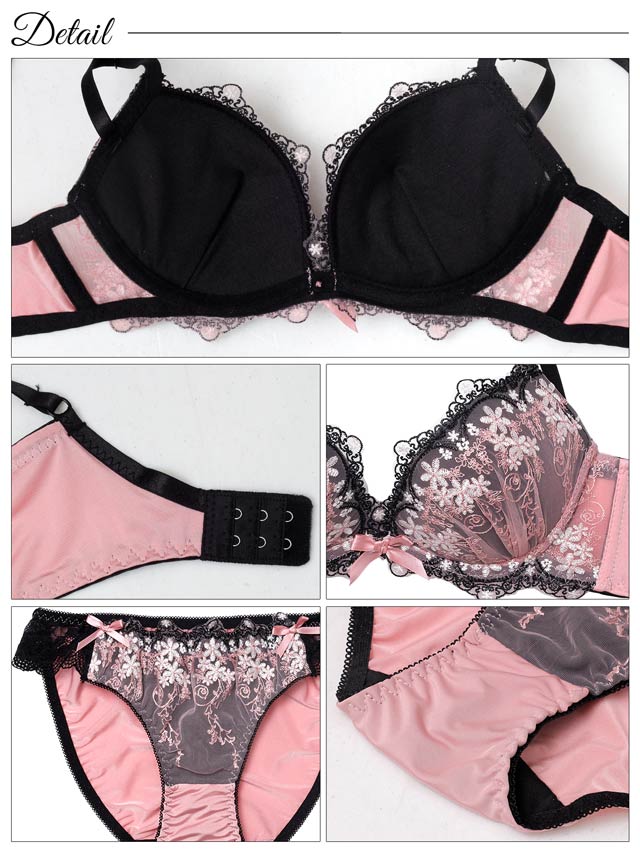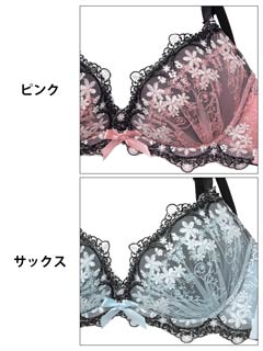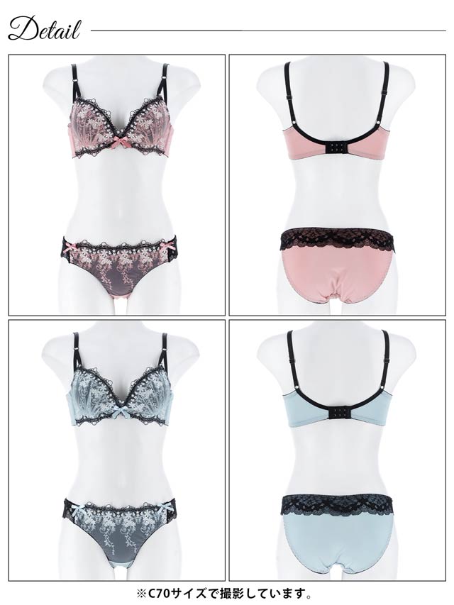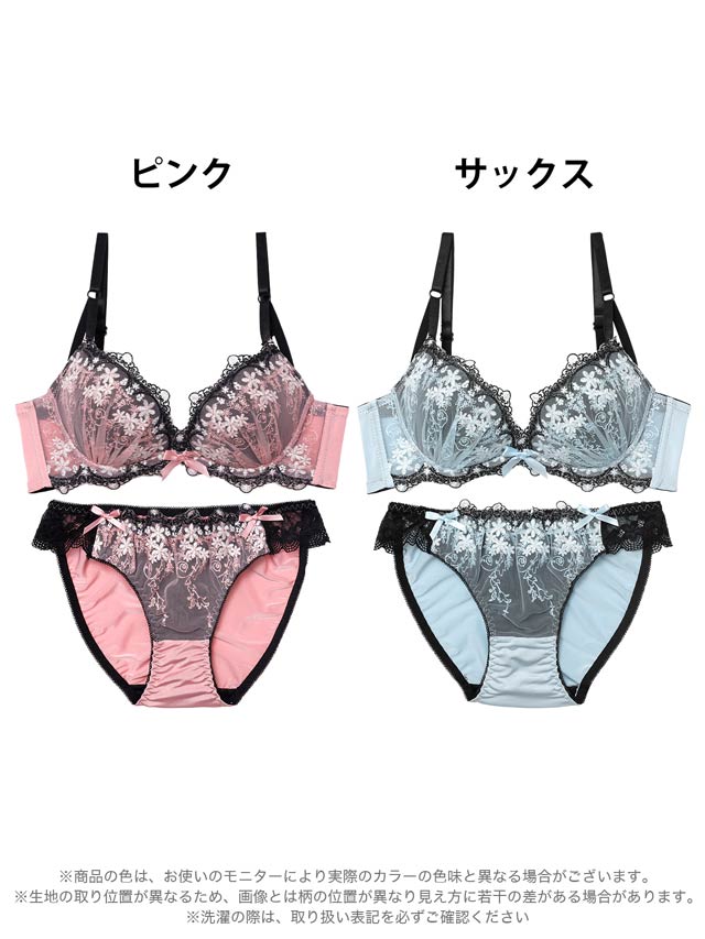 ダスティブルームエンブロイダリー育乳脇高ブラジャー&バック透けフルバックショーツ