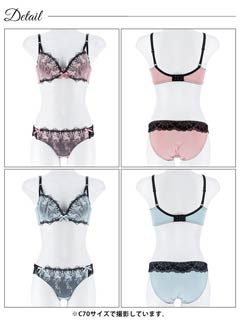 オールレースカットストリング育乳脇高ブラジャー&バック透けフルバックショーツ