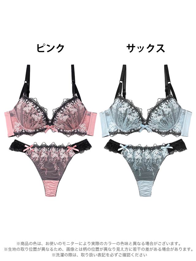 10/23再販!パステルシャドウフラワー育乳脇高ブラジャー&Tバックショーツ[激売れ]