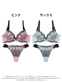 ダスティブルームエンブロイダリー育乳脇高ブラジャー&バック透けフルバックショーツ