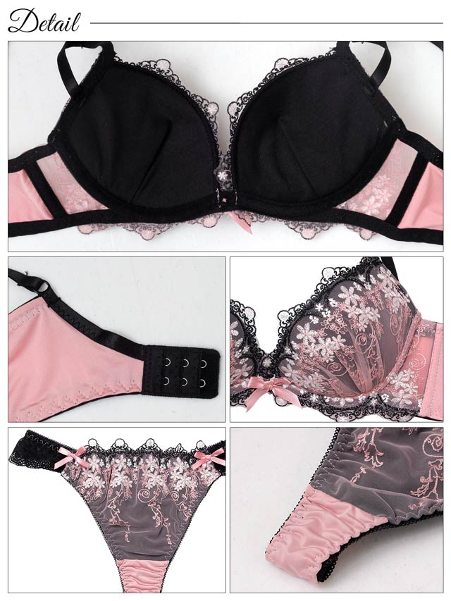 12/2再販!ダスティブルームエンブロイダリー育乳脇高ブラジャー&バック透けフルバックショーツ[激売れ]