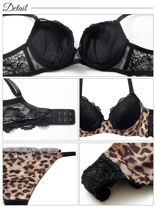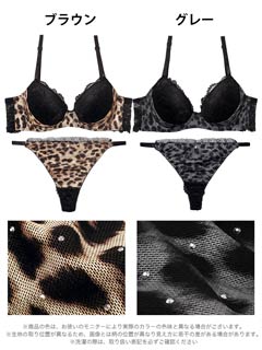 10/1新作!レオパードラインストーン育乳脇高ブラジャー&バック透けTバックショーツ[激売れ]