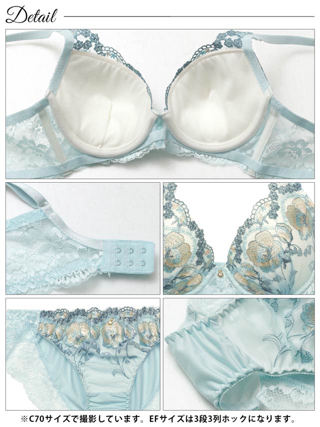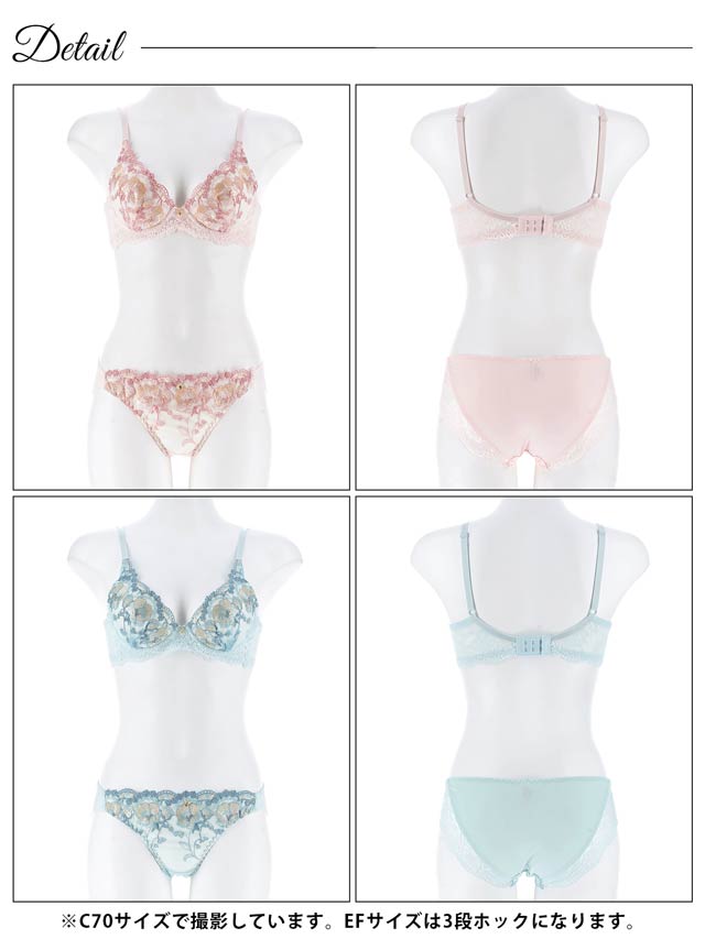 10/10新作!【EFサイズ】フェミニンレースフローラル育乳脇高ブラジャー&フルバックショーツ[大人気]