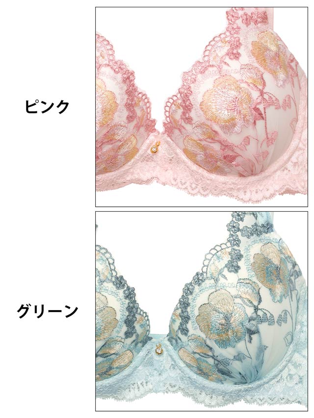 ダスティブルームエンブロイダリー育乳脇高ブラジャー&バック透けフルバックショーツ