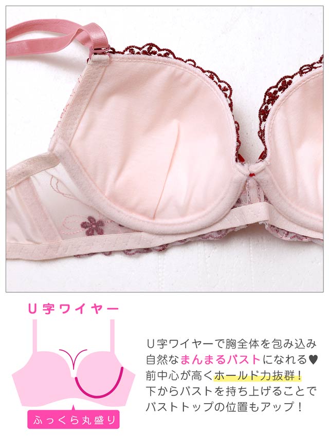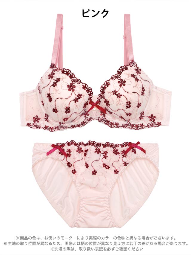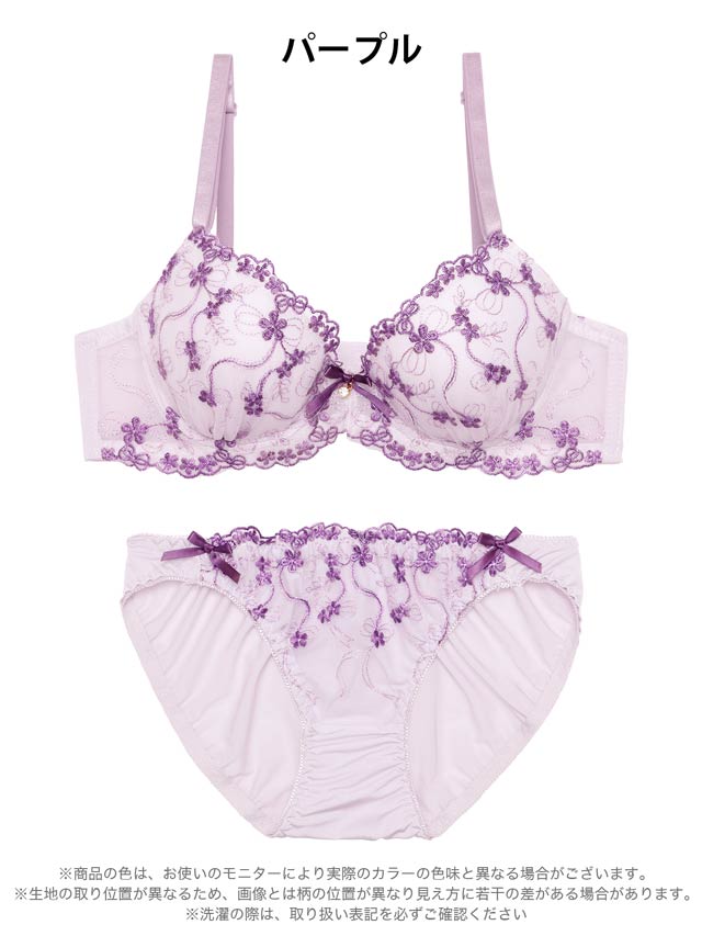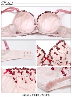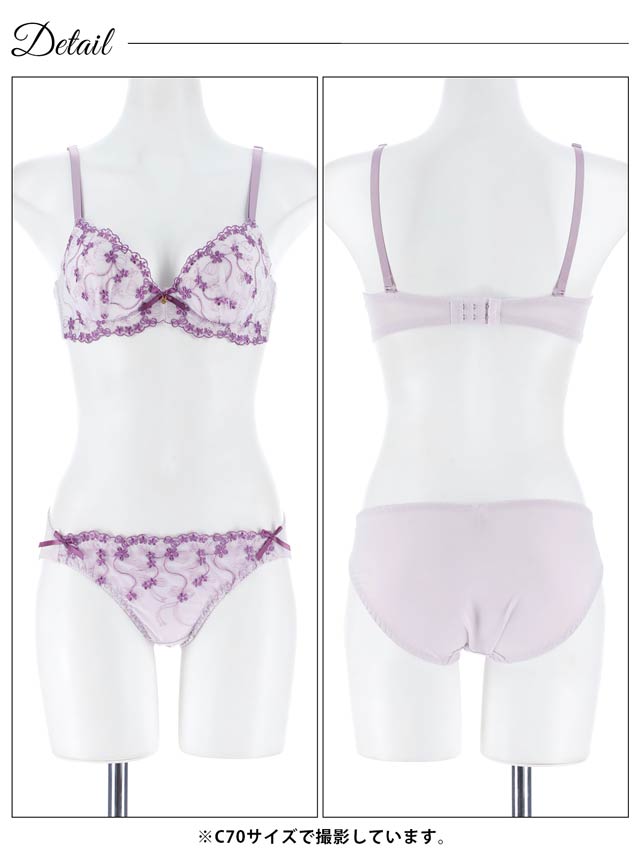 1/20再販!ダスティブルームエンブロイダリー育乳脇高ブラジャー&バック透けフルバックショーツ[激売れ]