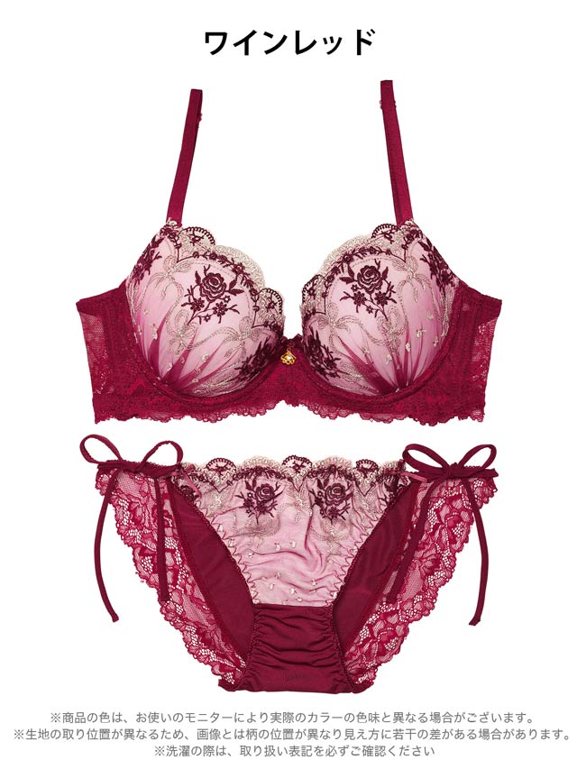 2/13新作!ラグジュアリーローズブーケ育乳脇高ブラジャー&サイド紐フルバックショーツ[激売れ]