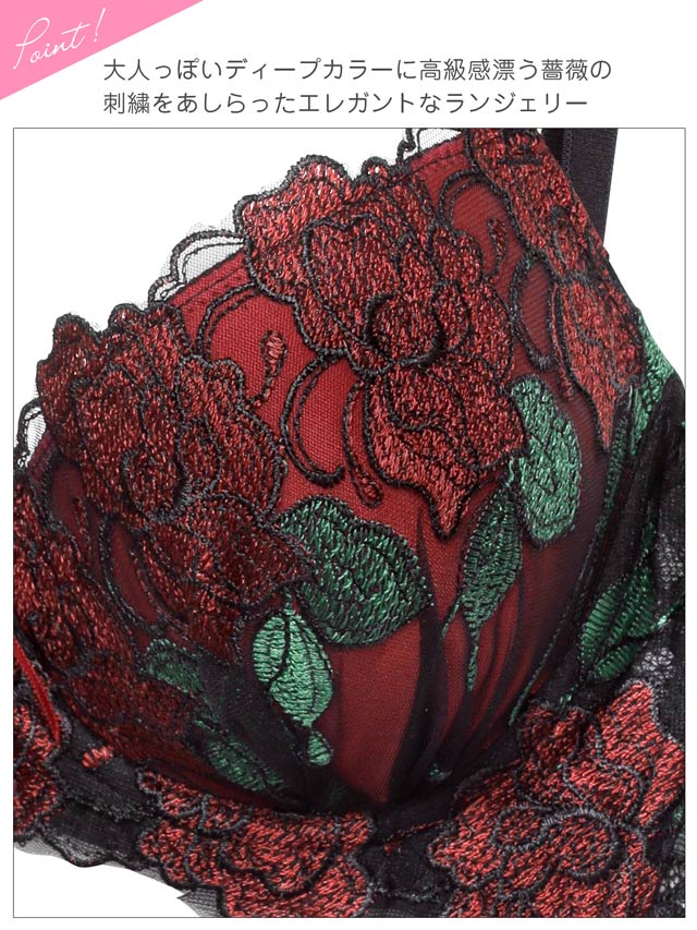 11/8再販!ロマンティックベルローズ育乳脇高ブラジャー&バック透けフルバックショーツ[激売れ]