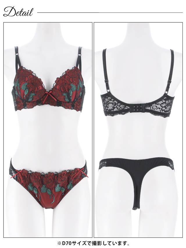 エレガンスフラワー刺繍ブラジャー&Tバックショーツ[1250DRW]