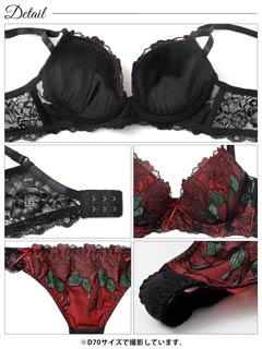 ロマンティックベルローズ育乳脇高ブラジャー&バック透けフルバックショーツ
