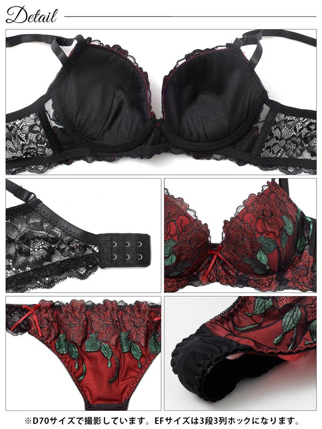 ロマンティックベルローズ育乳脇高ブラジャー&バック透けフルバックショーツ