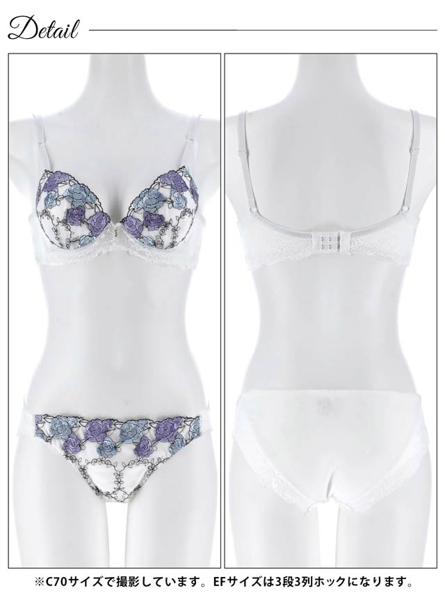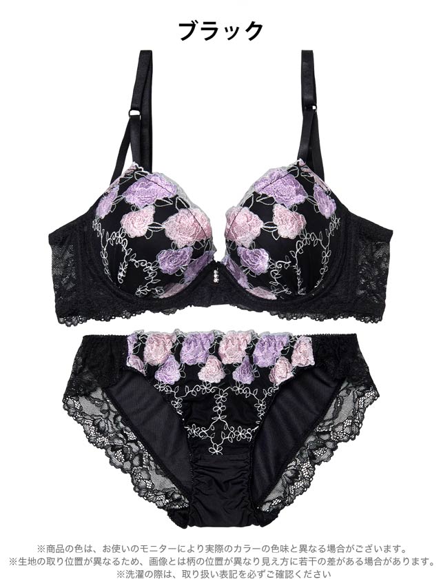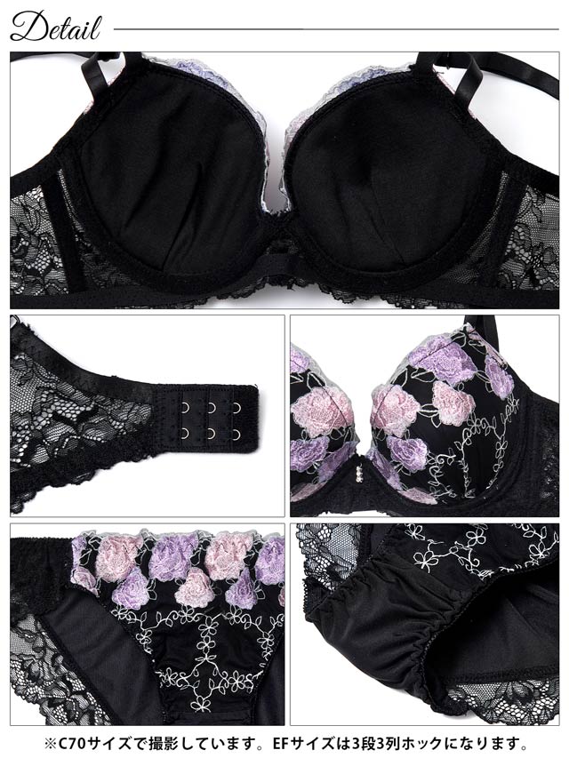 3/27新作!【EFサイズ】ルミナスローズエンブロイダリー育乳脇高ブラジャー&フルバックショーツ[大人気]