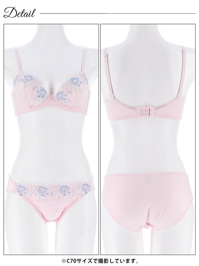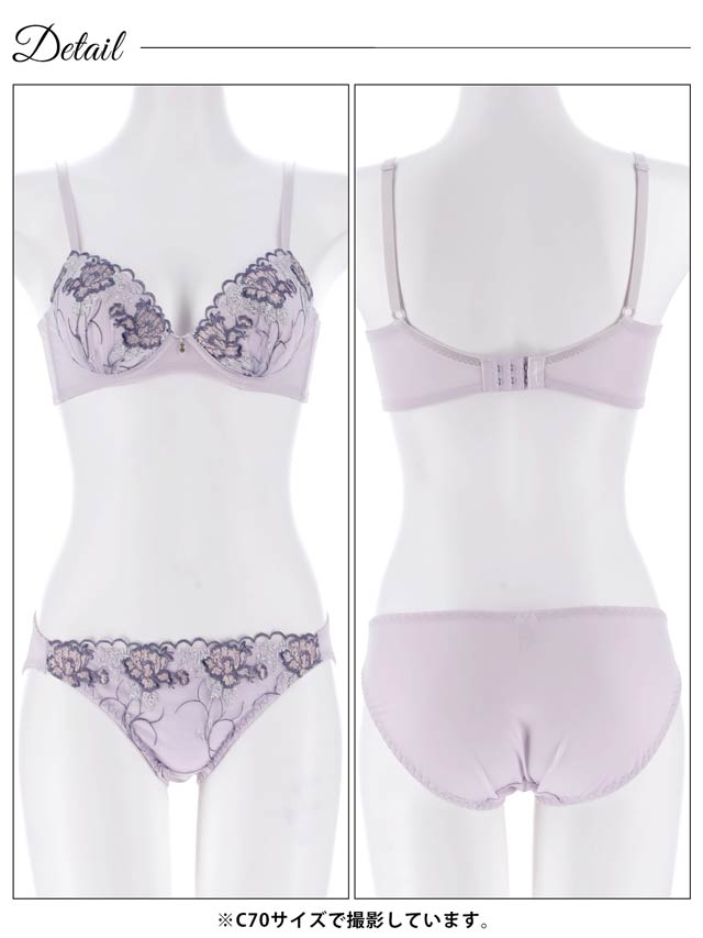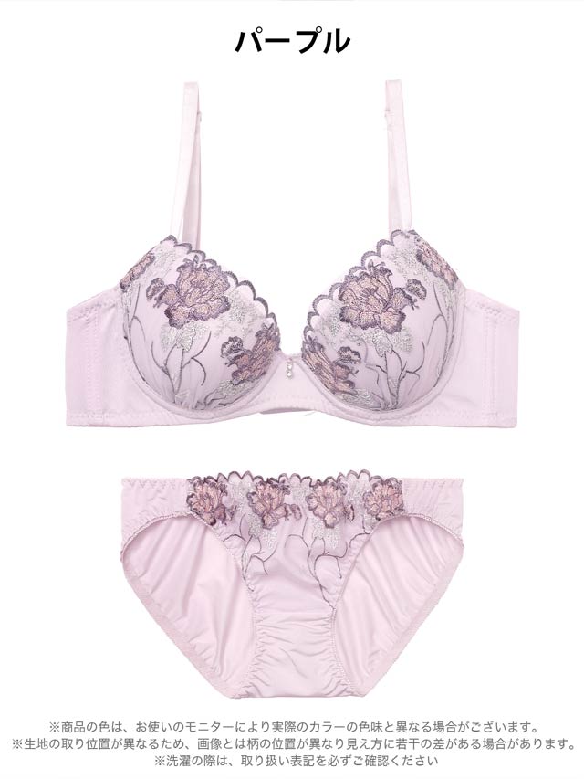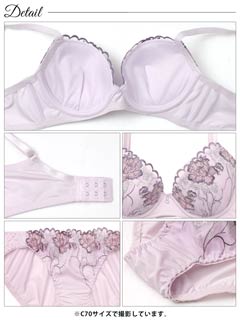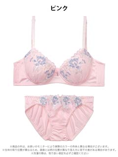 2/14再販!ダスティブルームエンブロイダリー育乳脇高ブラジャー&バック透けフルバックショーツ[激売れ]