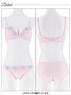 ダスティブルームエンブロイダリー育乳脇高ブラジャー&バック透けフルバックショーツ