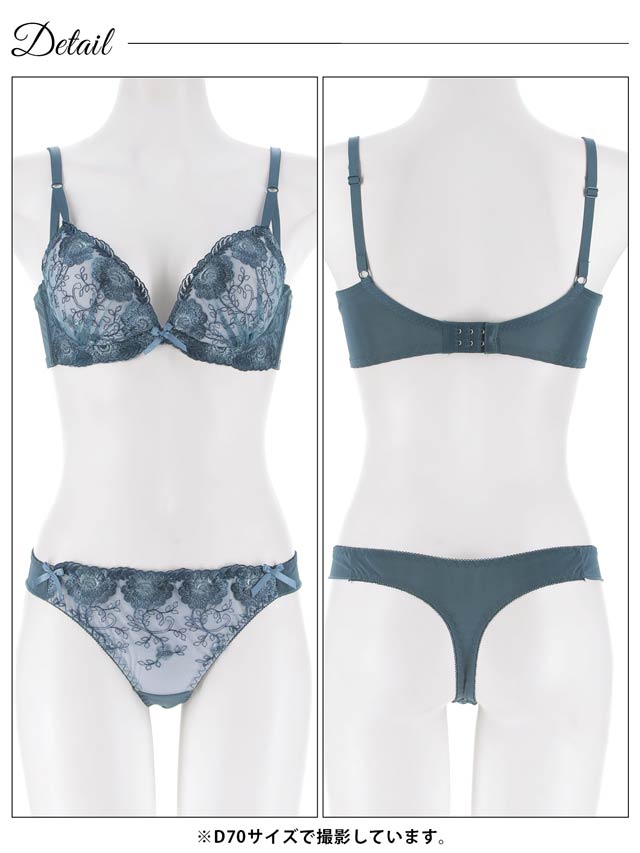 ダスティブルームエンブロイダリー育乳脇高ブラジャー&バック透けフルバックショーツ