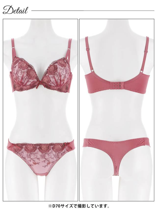 1/20再販!ダスティブルームエンブロイダリー育乳脇高ブラジャー&バック透けフルバックショーツ[激売れ]