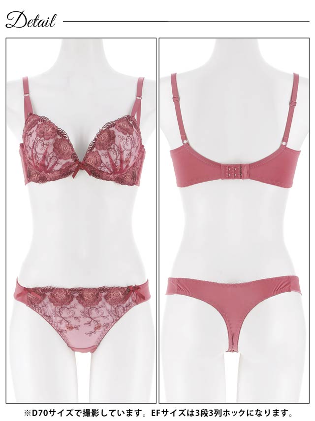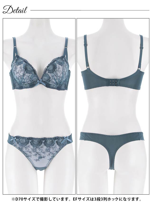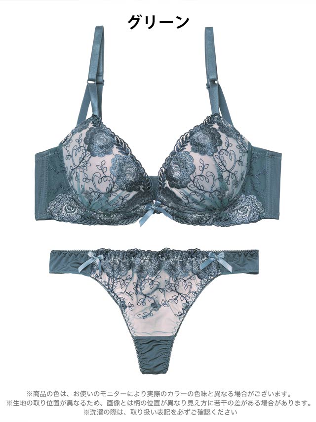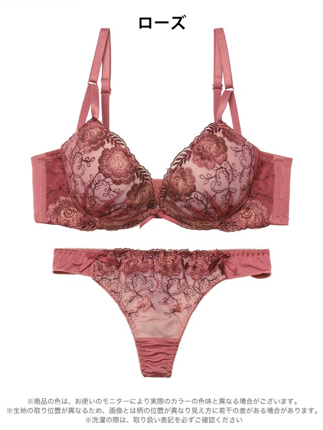 1/20再販!ダスティブルームエンブロイダリー育乳脇高ブラジャー&バック透けフルバックショーツ[激売れ]