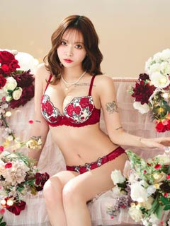 4/14再販!【三上悠亜着用】ゴージャスフラワーパール育乳脇高ブラジャー&フルバックショーツ[激売れ]