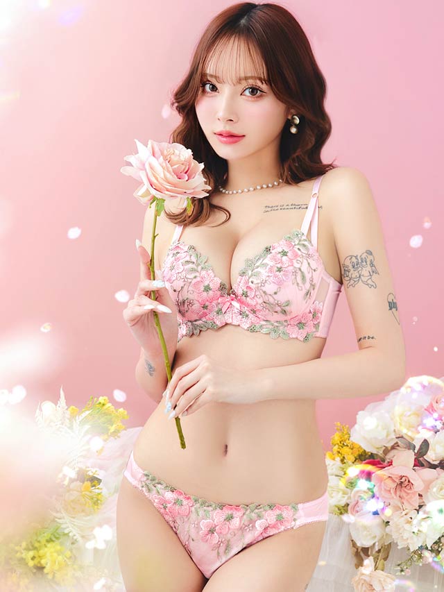 4/2再販!【三上悠亜着用】マーブルベルローズブラジャー&バック透けフルバックショーツ[激売れ]