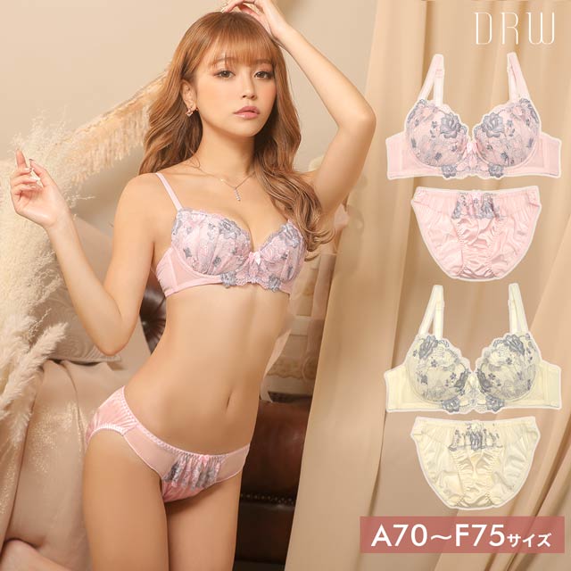 【GHサイズ】レースレイヤードパステルブロッサムブラジャー&フルバックショーツ