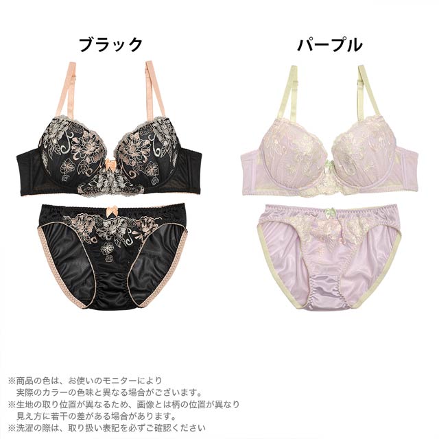 【GHサイズ】 ダリア刺繍ブラジャー&フルバックショーツ