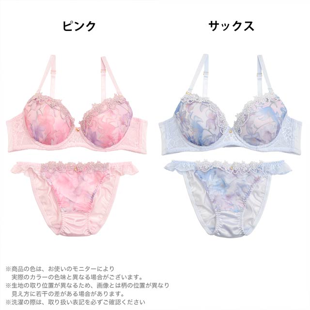パステルリリープリントブラジャー&フルバックショーツ[プチプラ]