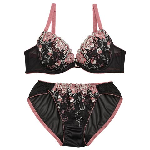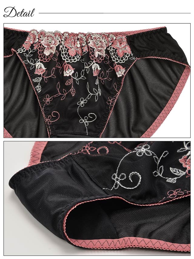 ドレッシーフラワーエンブロイダリーブラジャー&フルバックショーツ[プチプラ]