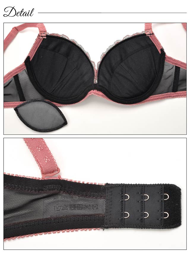オールレースカットストリング育乳脇高ブラジャー&バック透けフルバックショーツ