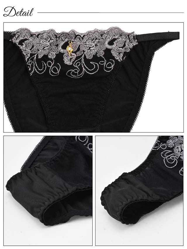 【3点セット】【GHIサイズ】シアーレースフラワーブラジャー&フルバック&Tバックショーツ