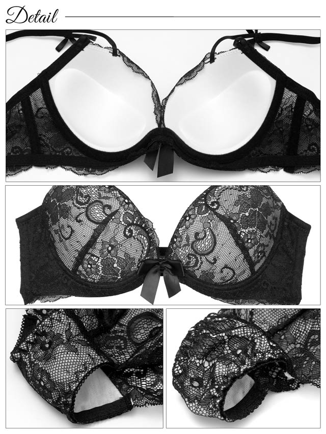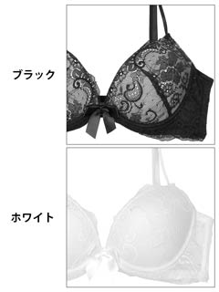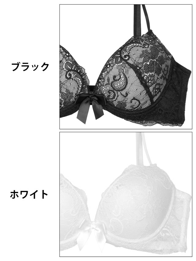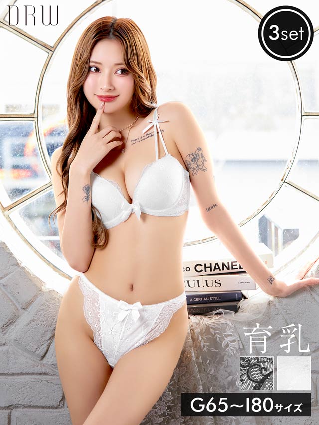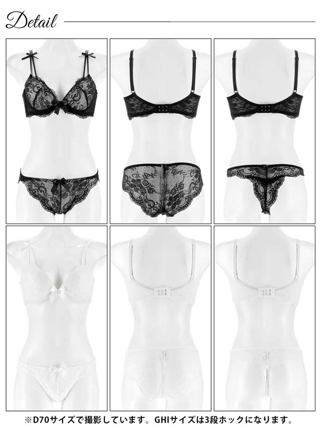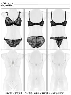 【3点セット】【GHIサイズ】モノトーンレーシィリボン育乳脇高ブラジャー&バック透けフルバック&Tバックショーツ[大人気]
