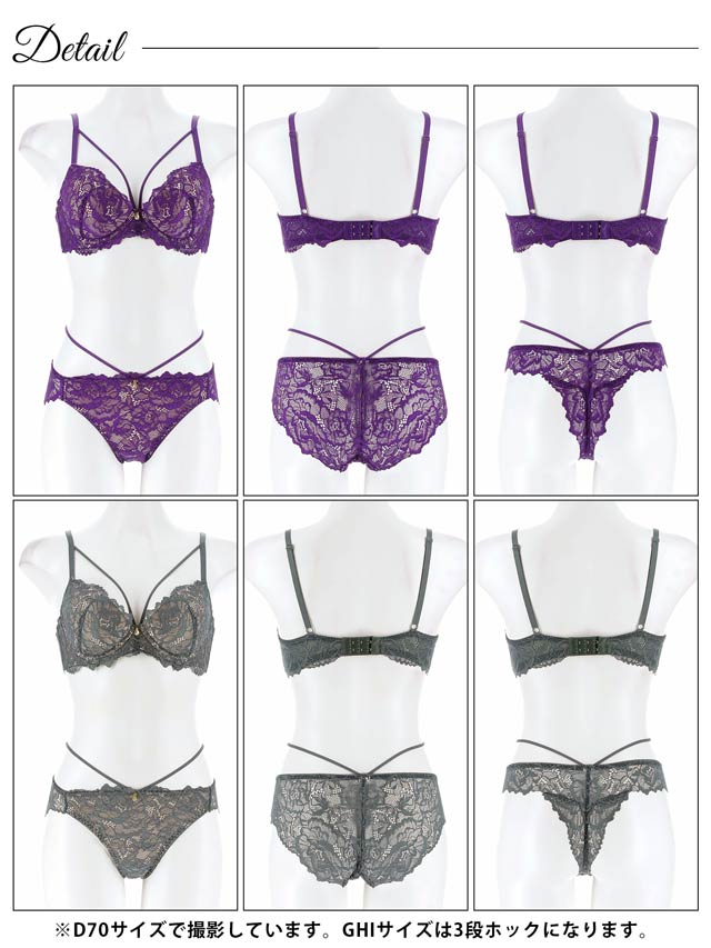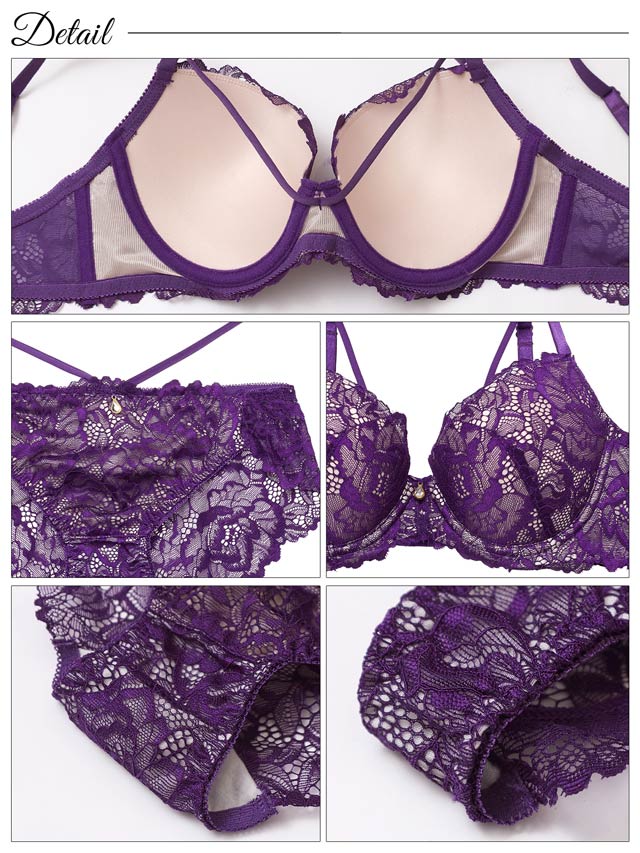 オールレースカットストリング育乳脇高ブラジャー&バック透けフルバックショーツ