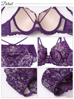 11/15再販!オールレースカットストリング育乳脇高ブラジャー&バック透けフルバックショーツ[激売れ]