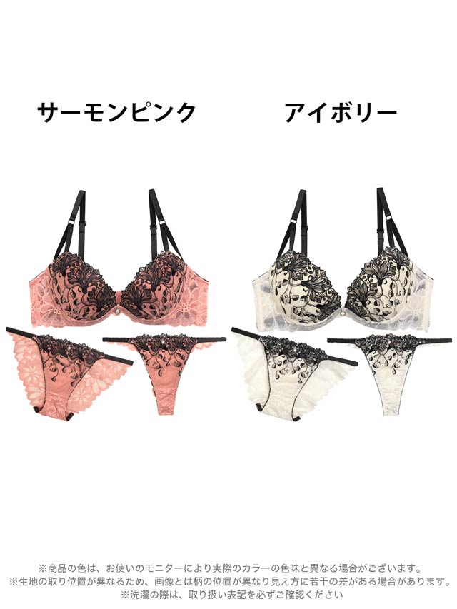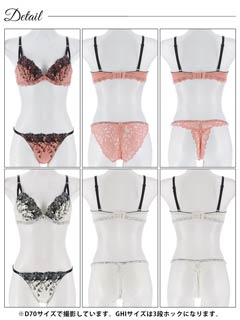【3点セット】【GHIサイズ】ノーブルシルエットフラワーブラジャー&バック透けフルバック&Tバックショーツ[大人気]