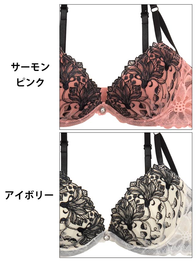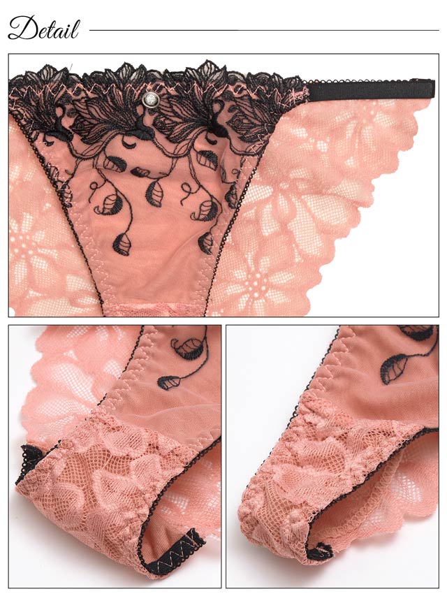 ダスティブルームエンブロイダリー育乳脇高ブラジャー&バック透けフルバックショーツ