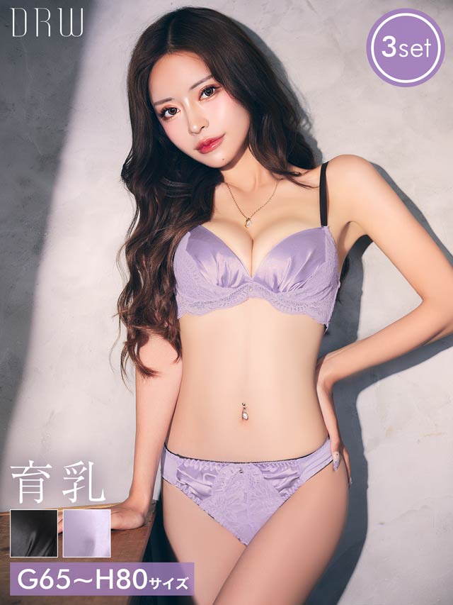 【3点セット】【GHサイズ】グレイスフルサテンレース育乳脇高ブラジャー&フルバック&Tバックショーツ[大人気]