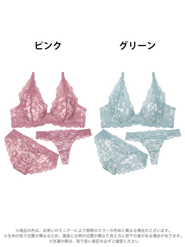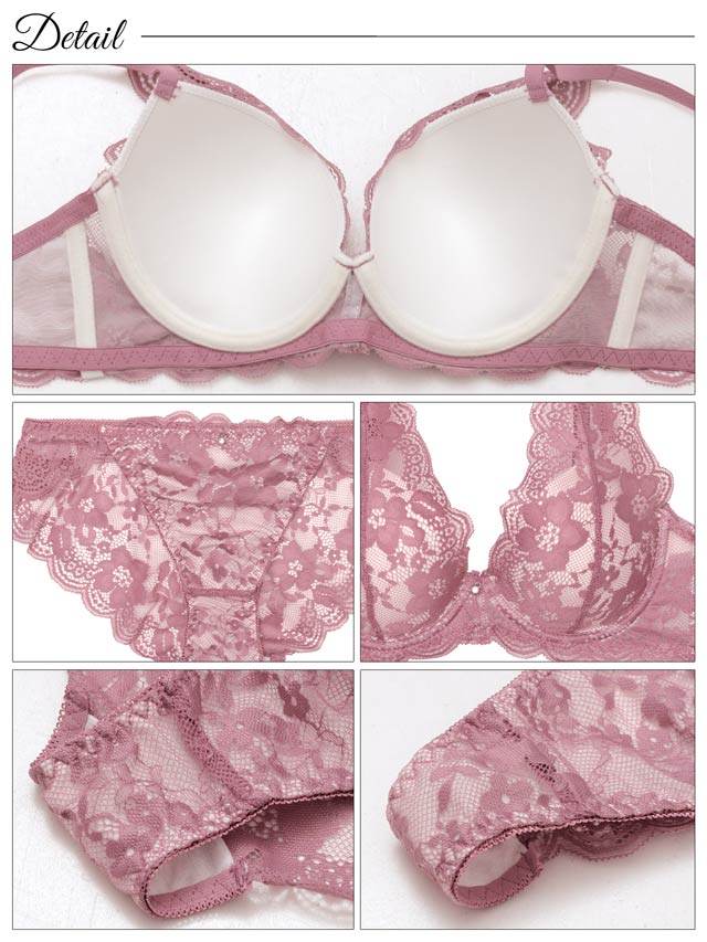 フロレゾンローズレース育乳脇高ブラジャー&サイド紐バック透けフルバックショーツ
