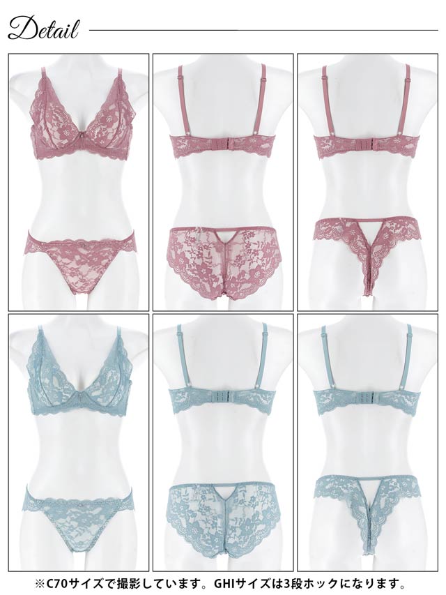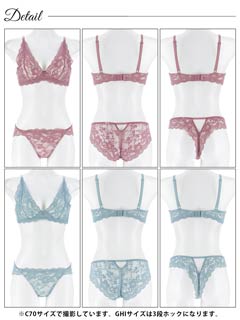 【3点セット】【GHIサイズ】ブルームエレガントレースブラジャー&バック透けフルバック&Tバックショーツ[大人気]