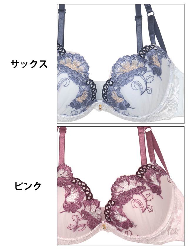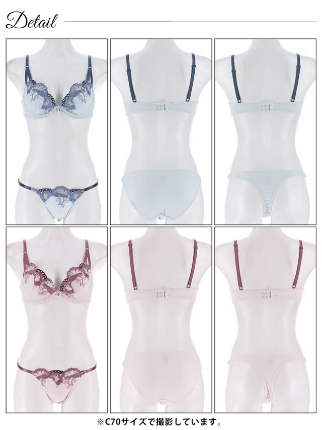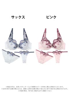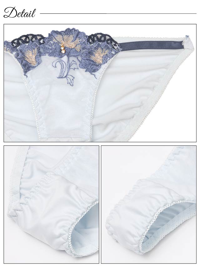ダスティブルームエンブロイダリー育乳脇高ブラジャー&バック透けフルバックショーツ