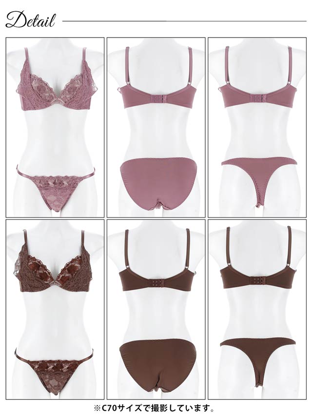 オールレースカットストリング育乳脇高ブラジャー&バック透けフルバックショーツ