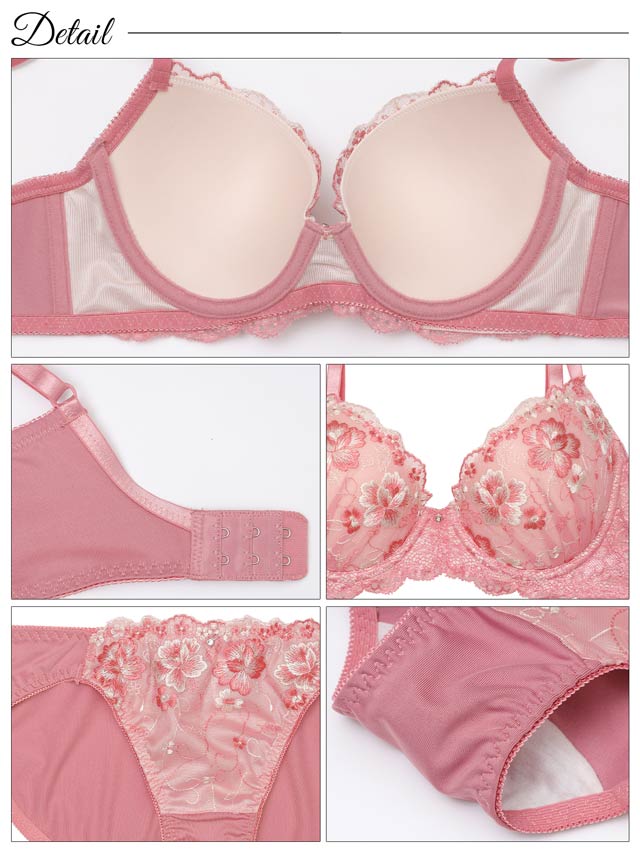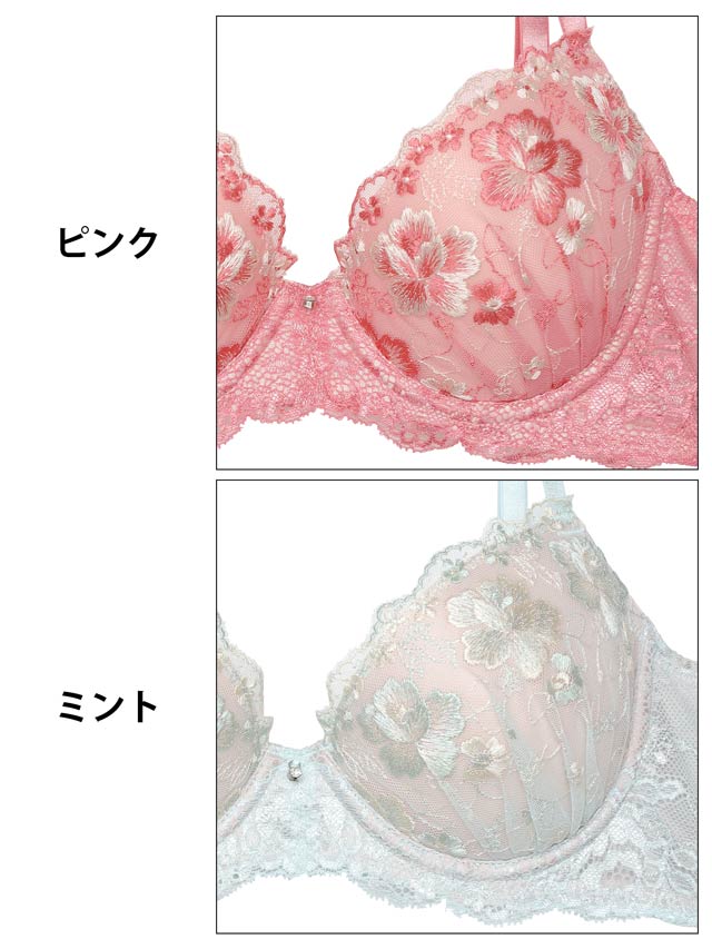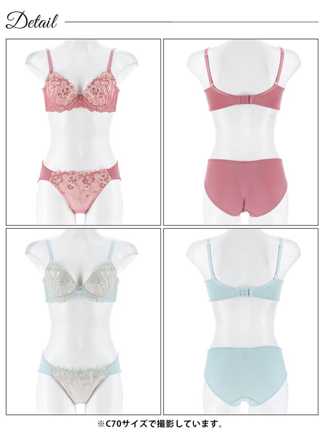 フロレゾンローズレース育乳脇高ブラジャー&サイド紐バック透けフルバックショーツ