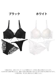 オールレースカットストリング育乳脇高ブラジャー&バック透けフルバックショーツ